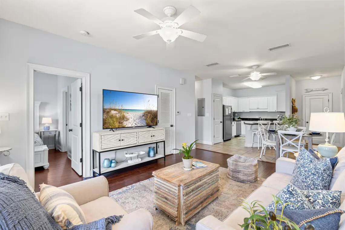 This well equipped 2-bedroom, 2-bath vacation rental is located a short walk from Dune Allen Beach and Top Sail Preserve. Enjoy the community pool or spend your day on the Emerald Coast full of trips to Baytowne Adventure Zone, Blue Mountain Beach, and more. This condo is located on the famous 30A highway and is a great place to kick your feet up on your private balcony or enjoy a movie night in on the Smart TV.